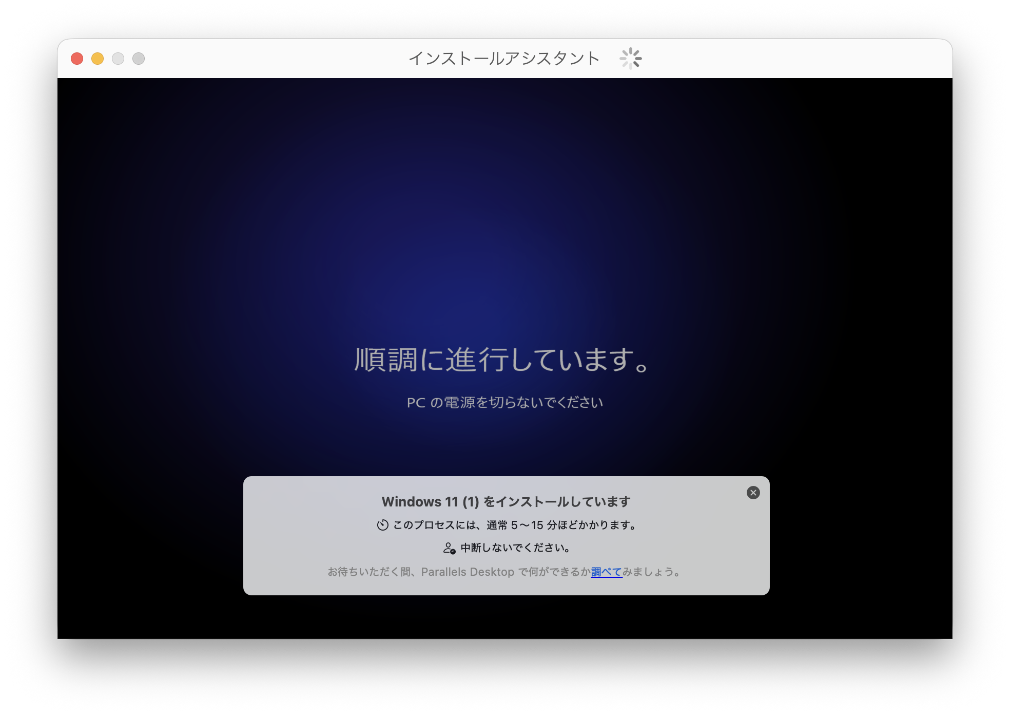 Windowsの順調に進行しています、という言葉ほど、順調とは?と感じちゃう。けど、このあと無事に起動しました。