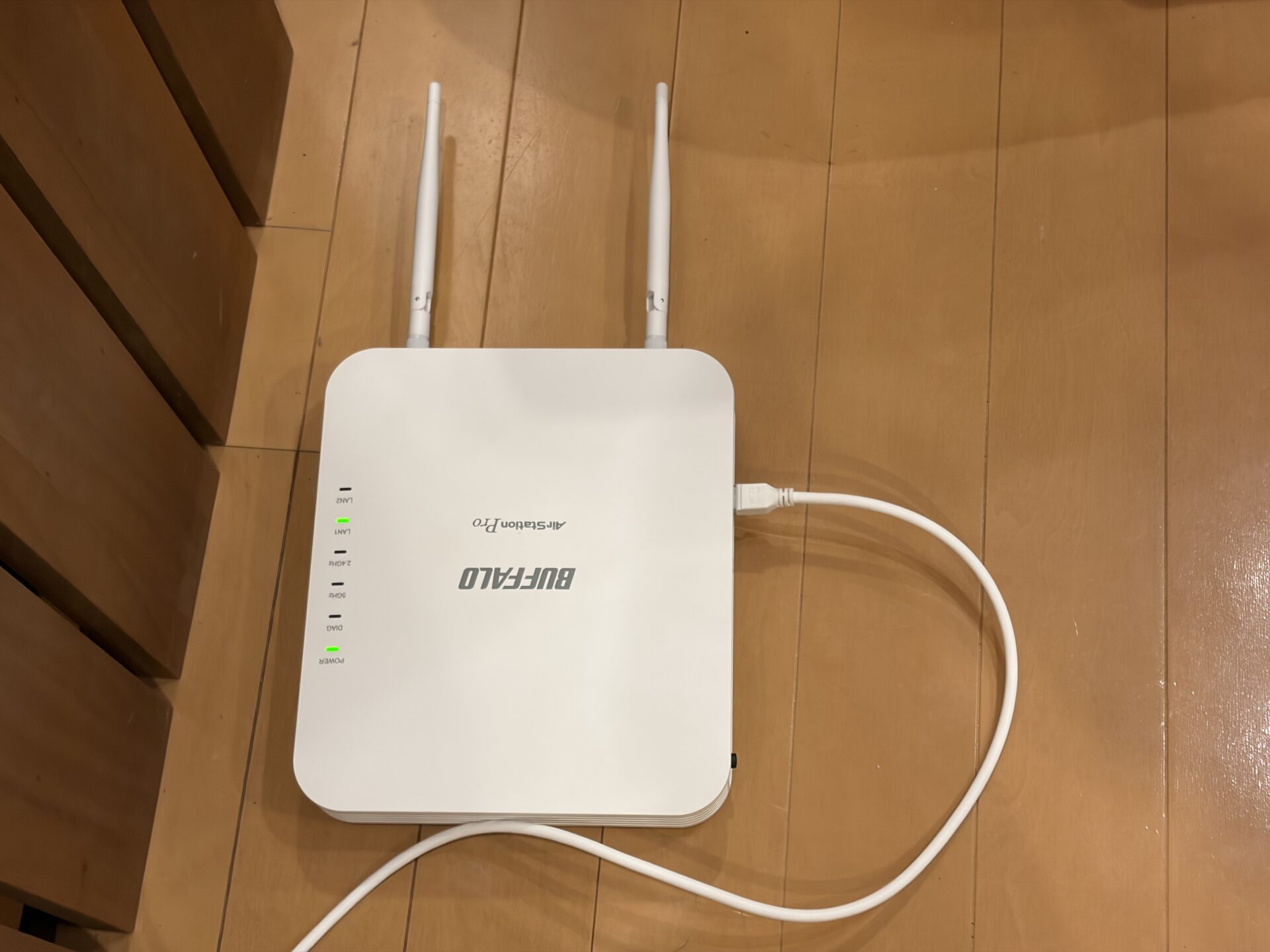 結論からお伝えすると、業務用Wi-Fiアクセスポイント BUFFALO WAPM-1266R に交換して、PoE給電でスッキリ設置できました。