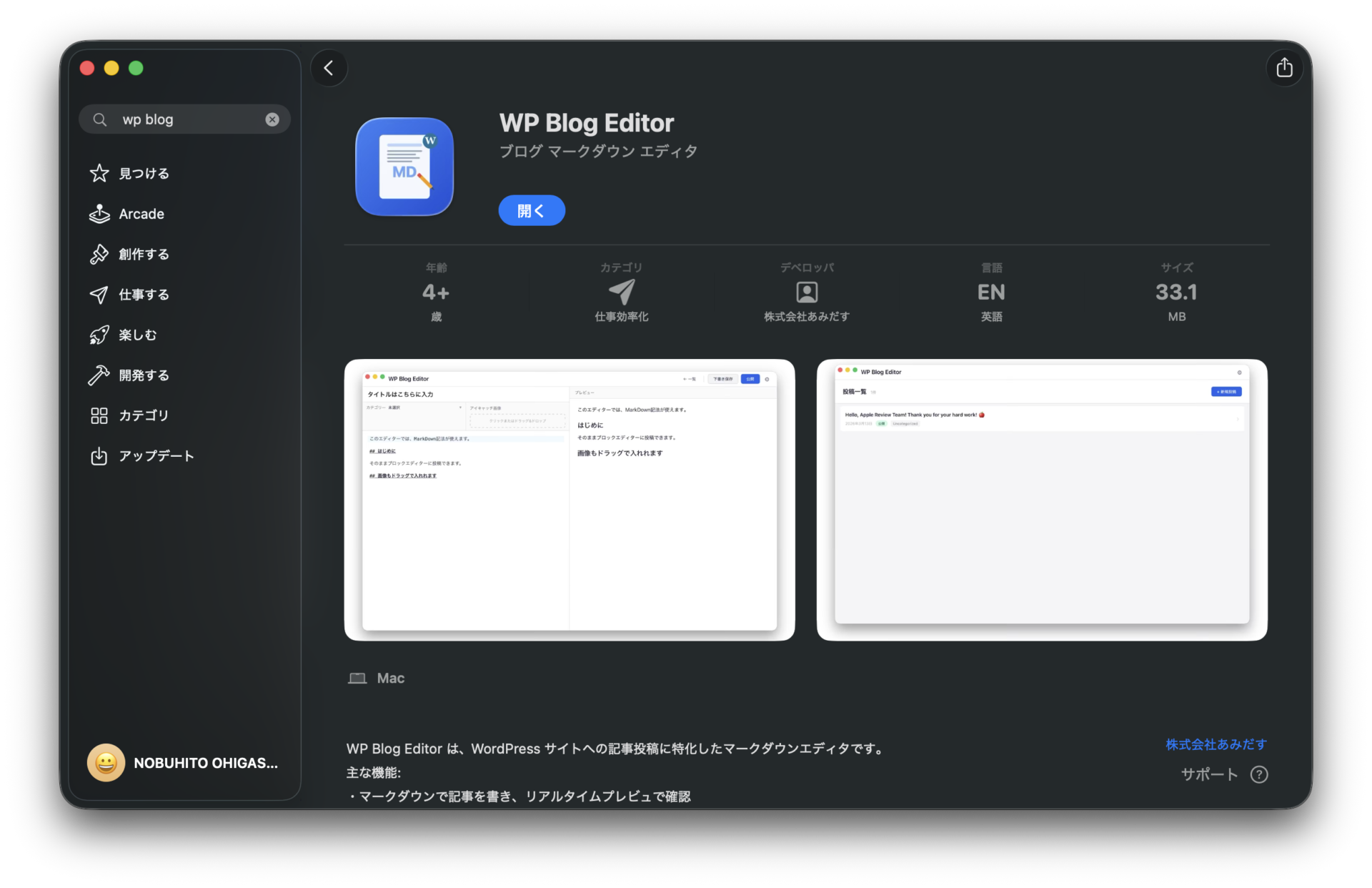 Mac App Store で「WP Blog Editor」を検索してインストールします。