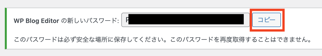 - 表示されたパスワードはその場でコピーして保存する(二度と表示されない)