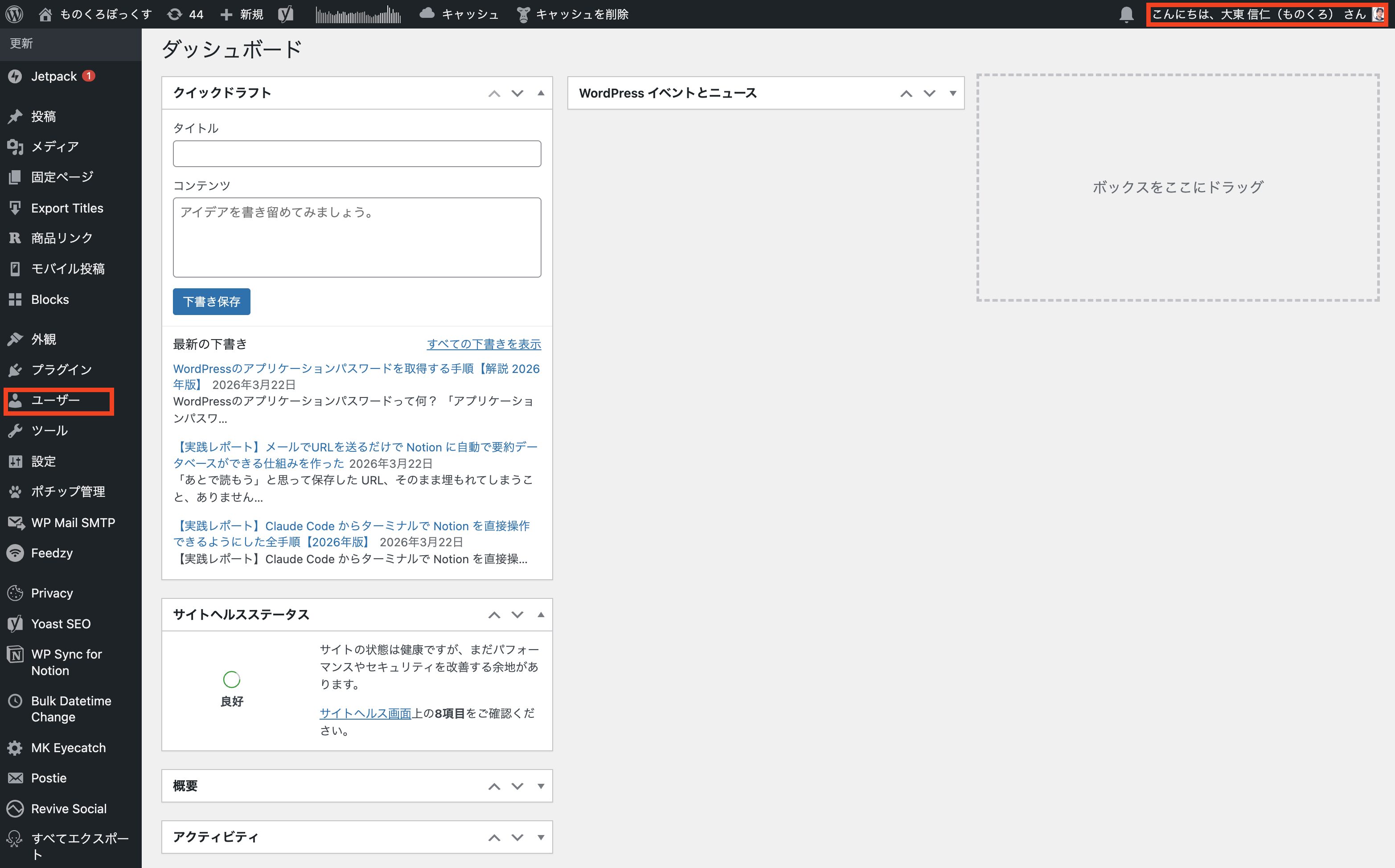 - ユーザー名:WordPressのログインユーザー名